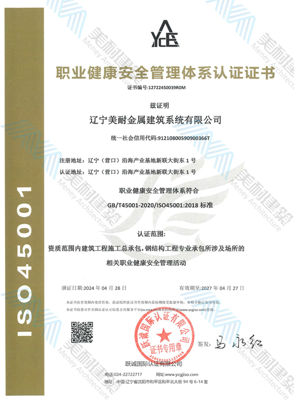 遼寧美耐金屬建筑系統(tǒng)有限公司位于遼寧(營(yíng)口)沿海產(chǎn)業(yè)基地,專(zhuān)注于預(yù)制金屬建筑系統(tǒng)領(lǐng)域,是一家集工業(yè)建筑設(shè)計(jì)、制作、施工及相關(guān)的技術(shù)咨詢與服務(wù)為一體的綜合性服務(wù)企業(yè)。作為國(guó)家鋼結(jié)構(gòu)協(xié)會(huì)會(huì)員、中國(guó)建筑金屬結(jié)構(gòu)協(xié)會(huì)會(huì)員單位與國(guó)家高新技術(shù)企業(yè),美耐建筑集建筑工程施工總承包、鋼結(jié)構(gòu)工程專(zhuān)業(yè)承包等多種資質(zhì)于一身,并擁有22項(xiàng)鋼結(jié)構(gòu)建筑領(lǐng)域?qū)@?項(xiàng)軟件著作權(quán)。